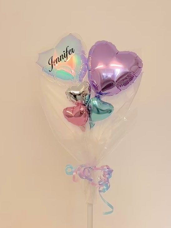 ハート型ホイルバルーン中×2個 (うち1つメッセージ入り) ハート型ホイルバルーン小×3個 |